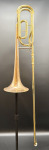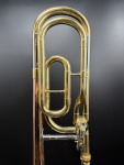 The Yamaha YSL 356R! This horn is in good condition with great action in the slide and the rotor. It has some minor lacquer wear, as pictured.